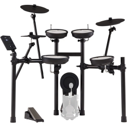 Uygun şekilde kompakt ve evde davul çalmak için ideal olan TD-07KV V-Drums kiti, uygun fiyatlı bir pakette üst düzey V-Drums'un üstün ifadesini ve çalınabilirliğini sunar. Roland’ın orijinal ultra sessiz, çift katlı mesh derileri trampet ve tom pedlerinde bulunurken, büyük crash ve ride zil pedleriyle, gerçekçi ve tatmin edici pedal hissi veren özel bir kick pedi kiti tamamlar. TD-07KV ayrıca, özel sesler oluşturmak için derin düzenleme araçları, müzik parçaları ve derslerle birlikte çalmak için yerleşik Bluetooth, bilgisayar kayıt yazılımına bağlanmak için USB ve çok daha fazlasıyla herhangi bir akustik kitin çok ötesine geçen yaratıcı fırsatları keşfetmenize olanak tanır.